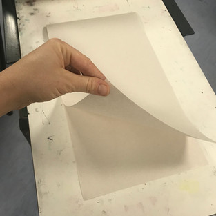 They were 2 A5 sheets, and needed to be A4 so I stuck them together in the middle with masking tape. This was an issue when I had put it in water as the stickiness came unstuck when soaking them. I decided once I had inked up my plate to carefully lay them across instead.